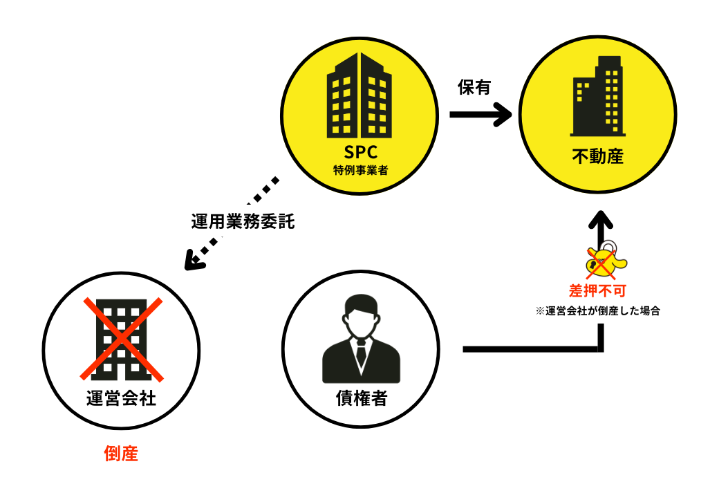 これにより、運営会社と投資家の皆様の資産が切り離され、運営会社が倒産した場合においても投資家の皆様の資産が保護される仕組みとなっています。